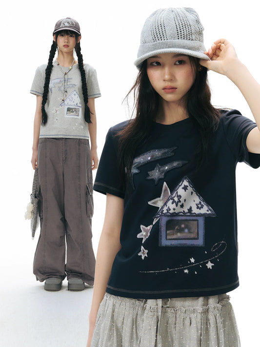 APPLIQUE PRINT SHORT SLEEVE T-SHIRT