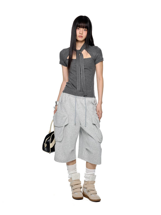 LACE TIE NECKLINE T-SHIRT