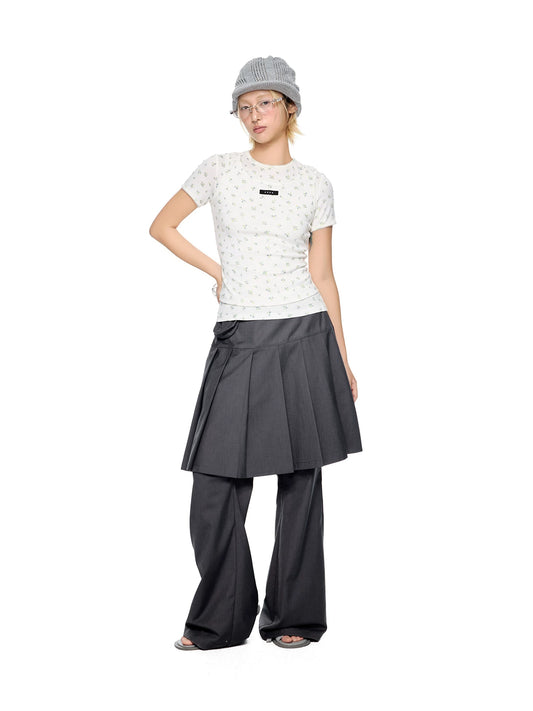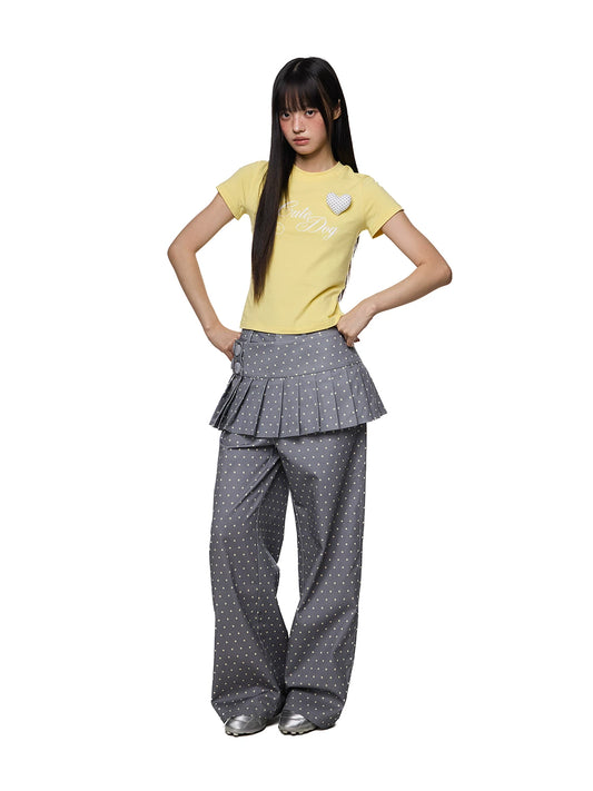 DETACHABLE POLKA DOT PLEATED PANTS