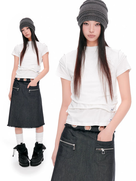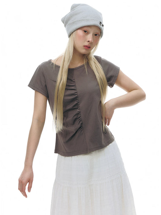 PLEATED ROUND NECK COTTON T-SHIRT