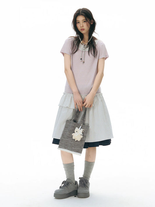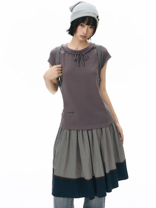 WOODEN TRIM SHORT SLEEVE DRESS SET