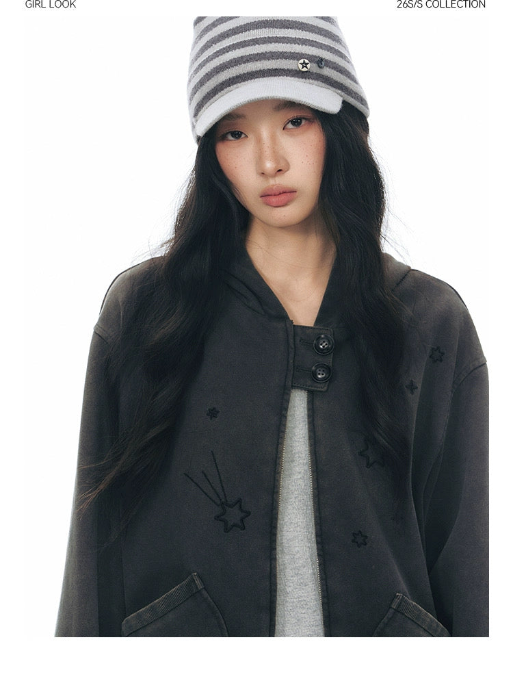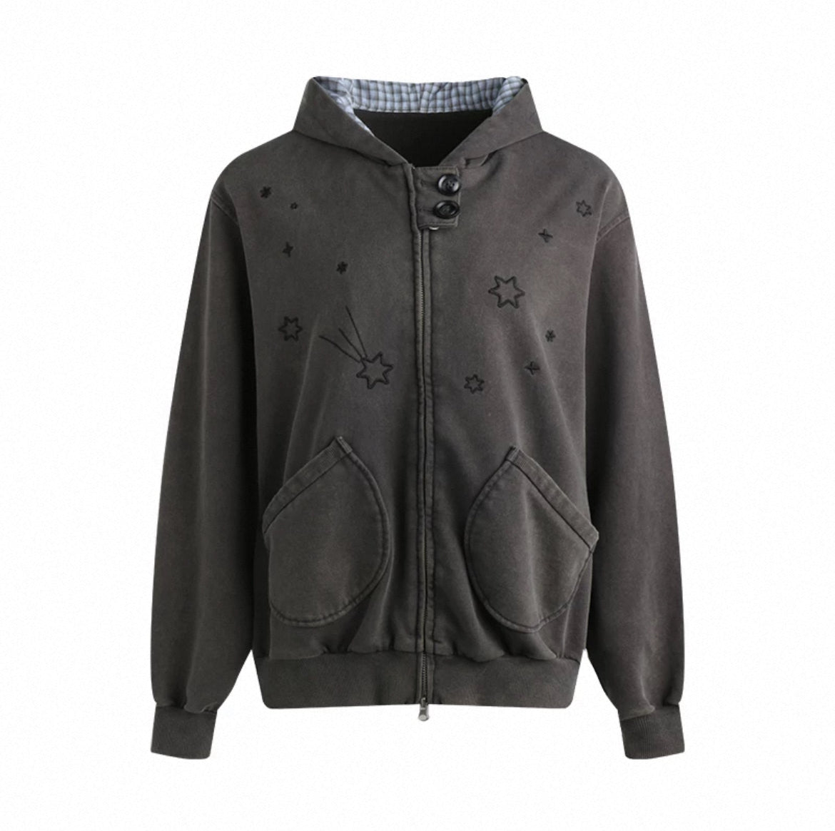 PLAID-TAB HOODED ZIP