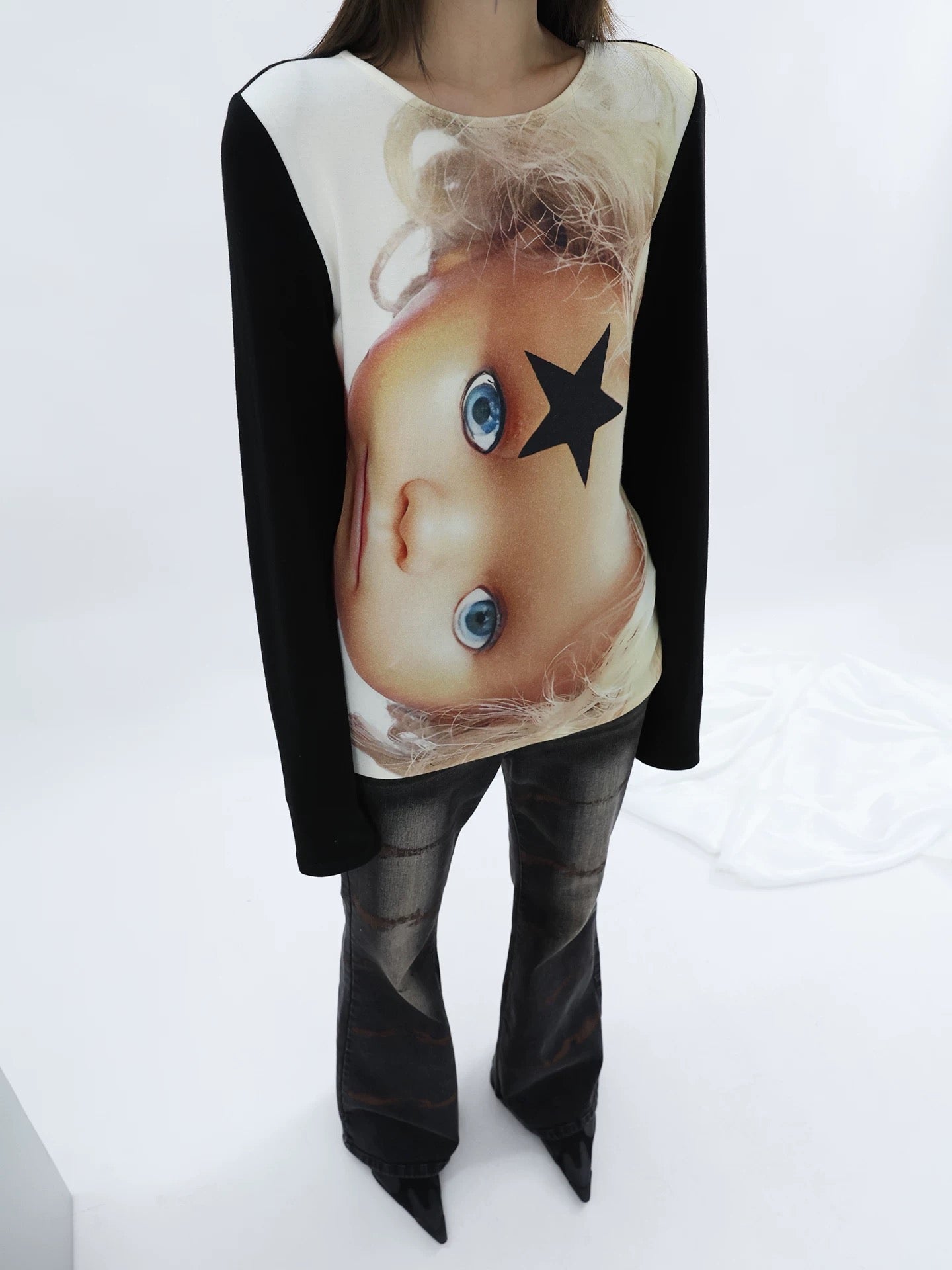 大胆にプリントされたドールフェイスとスターアイコンが視線を奪う、唯一無二のロングスリーブ。