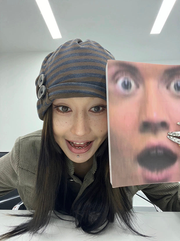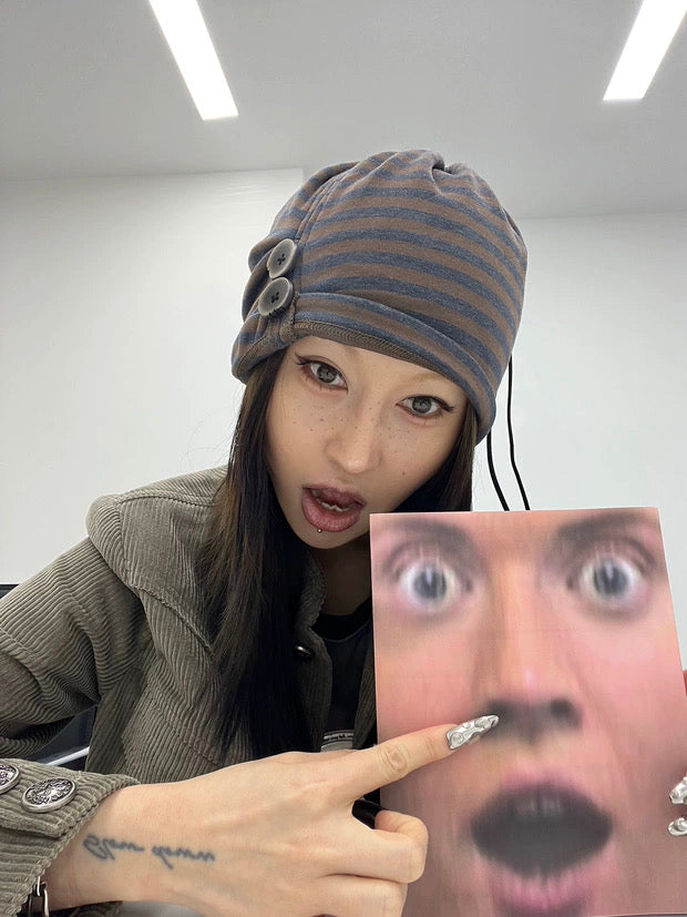 STRIPE BUTTON BEANIE
